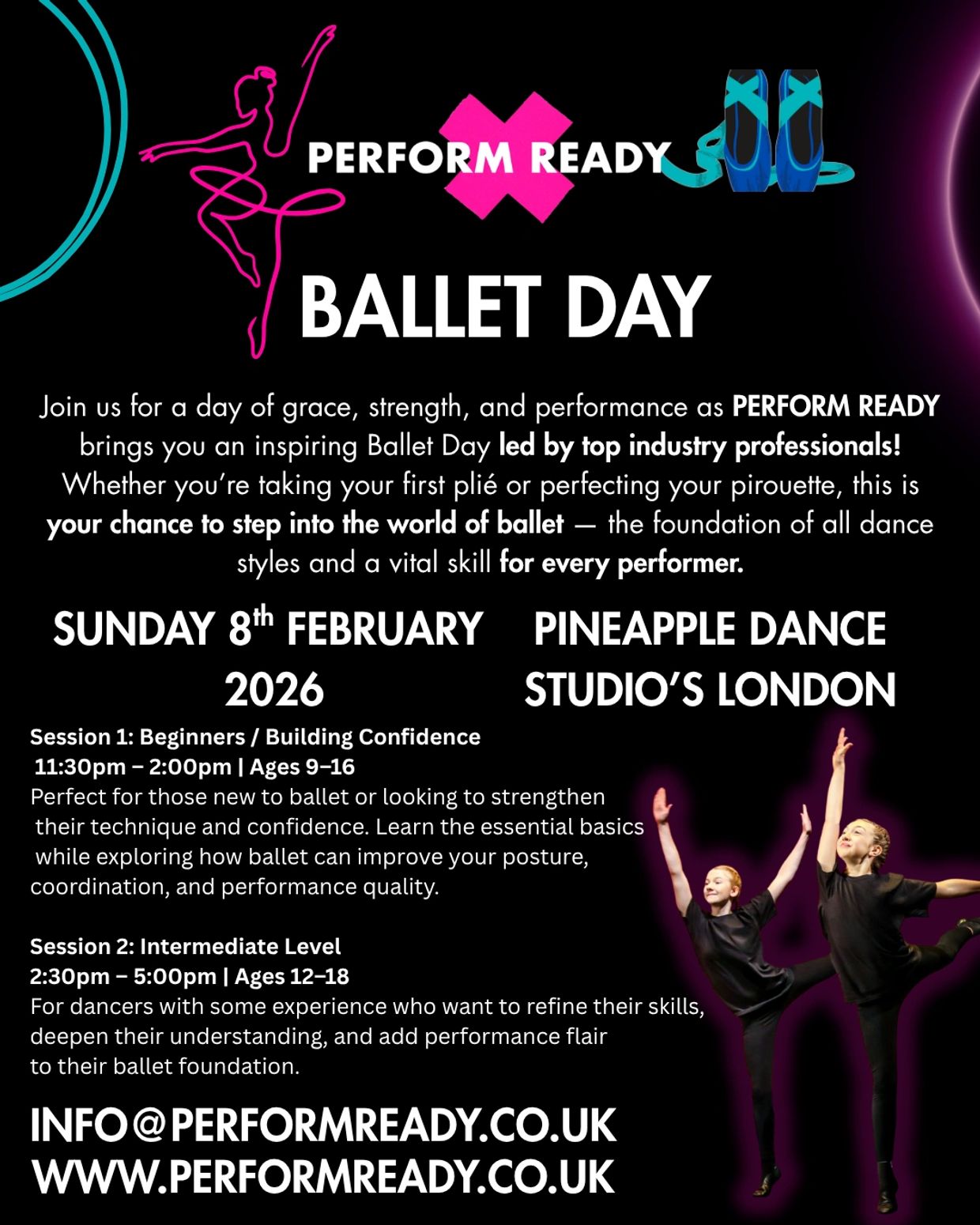 Join us for a day of grace, strength, and performance as PERFORM READY brings you an inspiring Ballet Day led by top industry professionals!